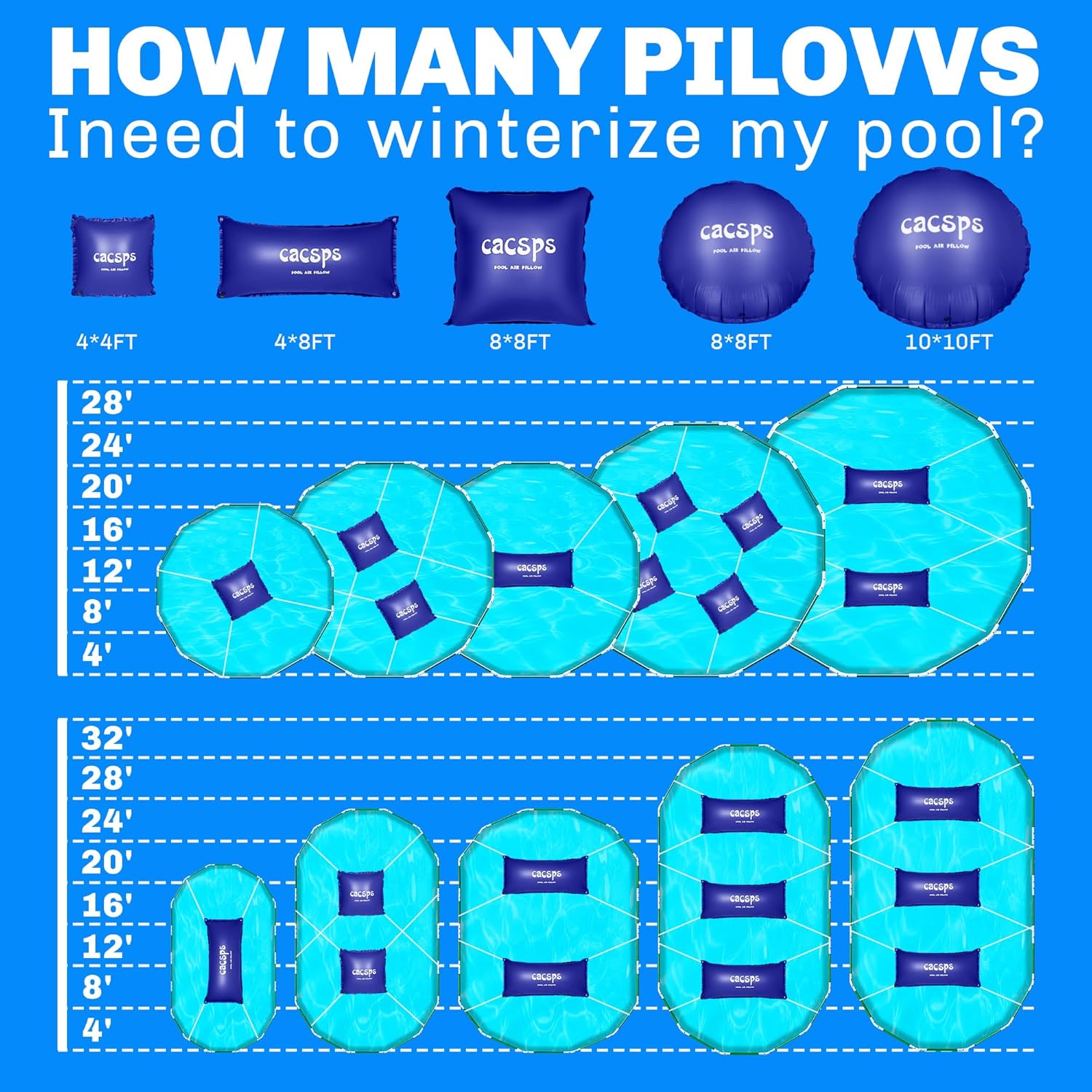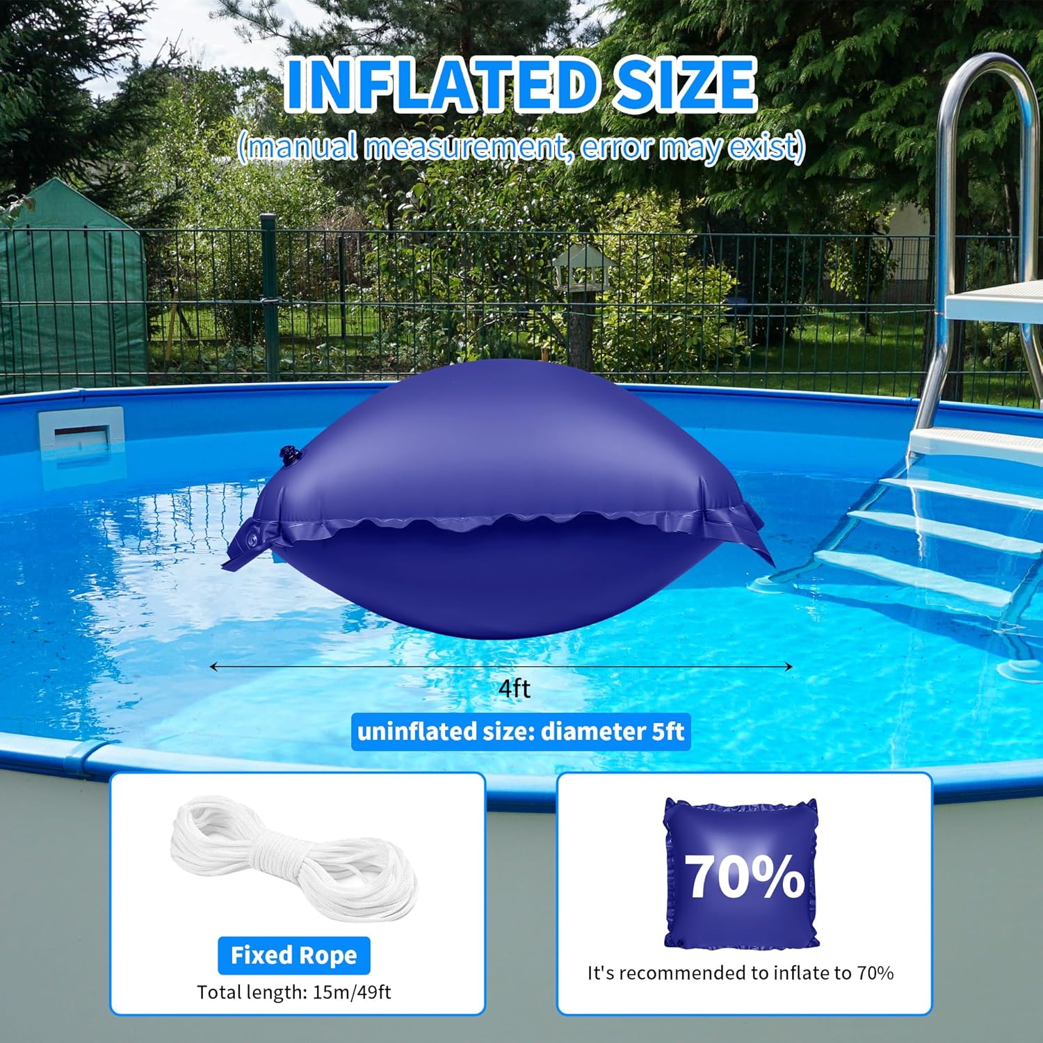 Use this pool pillow in above-ground pools during winterization to prevent ice damage and centralize debris. It is suitable for residential pools in cold climates, where freezing temperatures pose a risk to pool structures. The target audience includes homeowners and pool maintenance professionals seeking reliable seasonal protection.