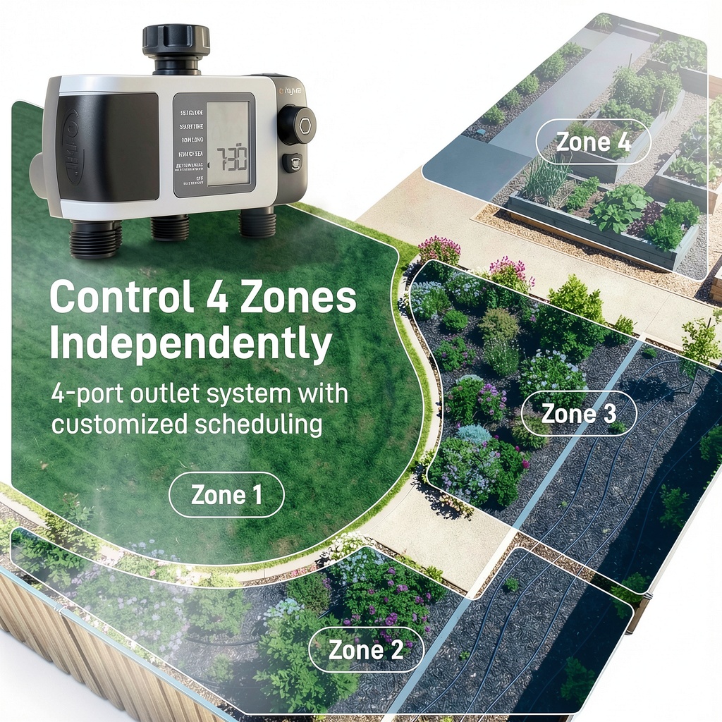 With multiple port options and customizable settings, it works well for small to medium gardens, adapting to different watering zones and plant types.
