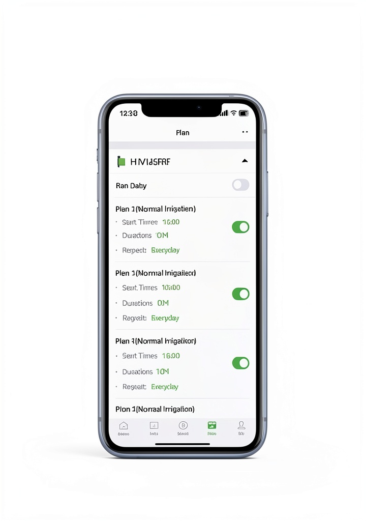 You can set up to 6 watering plans with options for Normal Irrigation, Cycle & Soak, and Misting Irrigation modes.