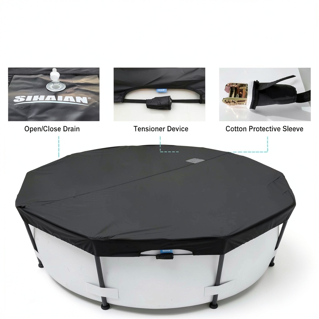 This pool cover is perfect for residential above-ground round pools, providing reliable coverage during seasonal changes, heavy rain, or windy conditions. It suits homeowners looking to reduce maintenance by blocking debris, preventing water contamination, and minimizing algae growth. Ideal for use in patios, lawns, or garden settings, it helps extend the pool’s life by shielding it from sun damage and harsh weather, making it a practical choice for families and pool owners seeking hassle-free protection.